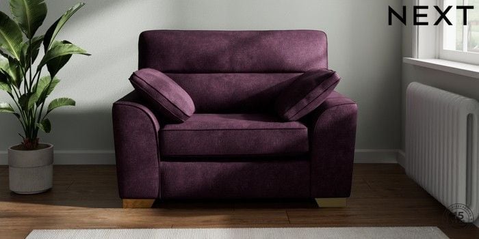 7.2.10 Buy Stamford Highback Snuggle Plush Chenille Dark Plum Purple Large Square Angle - Brushed Brass from the Next UK online shop Click here to use our accessible website