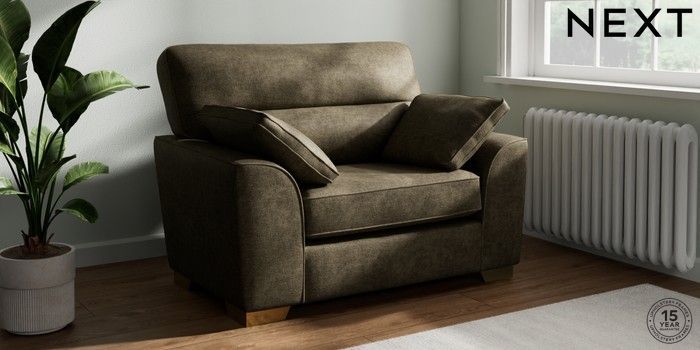 7.2.10 Buy Stamford Highback Snuggle Plush Chenille Moss Green Large Square Angle - Brushed Brass from the Next UK online shop Click here to use our accessible website