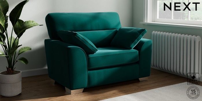 7.2.10 Buy Stamford Highback Snuggle Plush Velvet Easy Clean Juniper Green Large Square Angle - Chrome Metal from the Next UK online shop Click here to use our accessible website