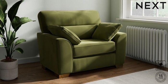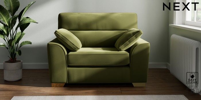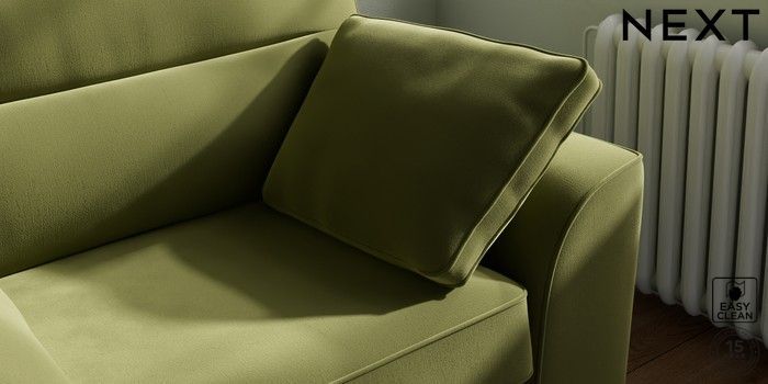 7.3.1 Buy Stamford Highback Snuggle Plush Velvet Easy Clean Mid Olive Green Large Square Angle - Brushed Brass from the Next UK online shop Click here to use our accessible website