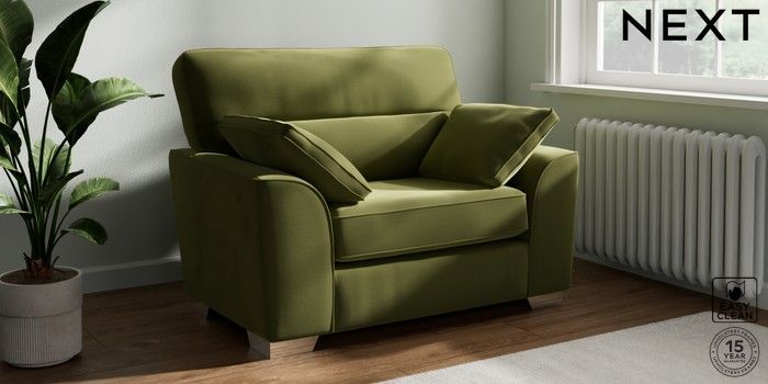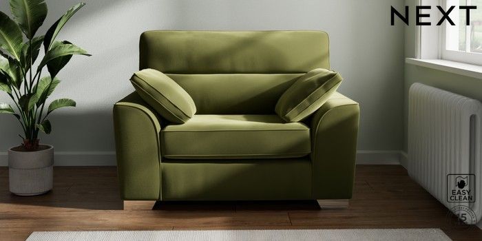 7.3.1 Buy Stamford Highback Snuggle Plush Velvet Easy Clean Mid Olive Green Large Square Angle - Chrome Metal from the Next UK online shop Click here to use our accessible website