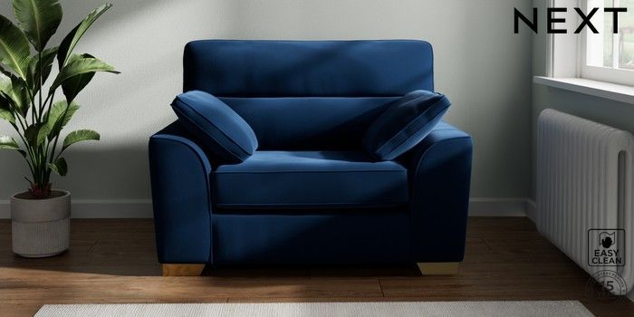 7.2.10 Buy Stamford Highback Snuggle Plush Velvet Easy Clean Navy Blue Large Square Angle - Brushed Brass from the Next UK online shop Click here to use our accessible website