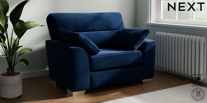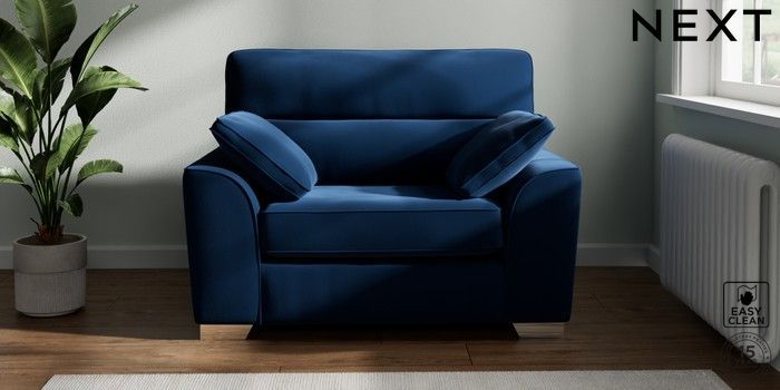 7.3.1 Buy Stamford Highback Snuggle Plush Velvet Easy Clean Navy Blue Large Square Angle - Chrome Metal from the Next UK online shop Click here to use our accessible website