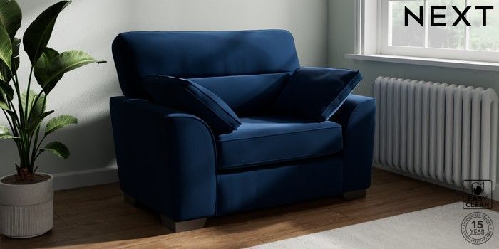 7.3.1 Buy Stamford Highback Snuggle Plush Velvet Easy Clean Navy Blue Large Square Angle - Gunmetal from the Next UK online shop Click here to use our accessible website