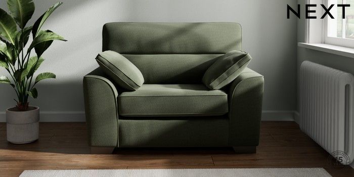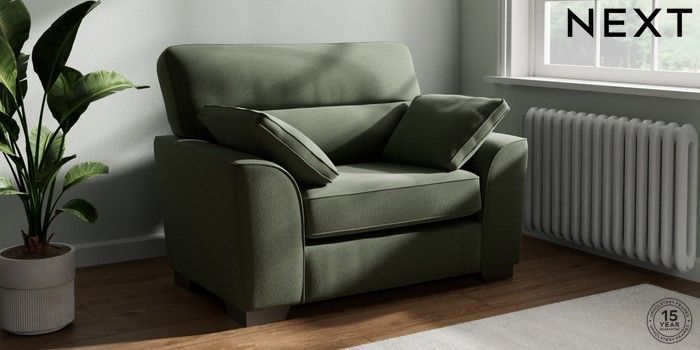7.3.1 Buy Stamford Highback Snuggle Relaxed Linen Look Dark Green Large Square Angle - Gunmetal from the Next UK online shop Click here to use our accessible website