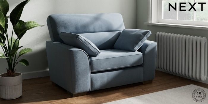 7.2.10 Buy Stamford Highback Snuggle Relaxed Linen Look Mid Blue Large Square Angle - Mid from the Next UK online shop Click here to use our accessible website
