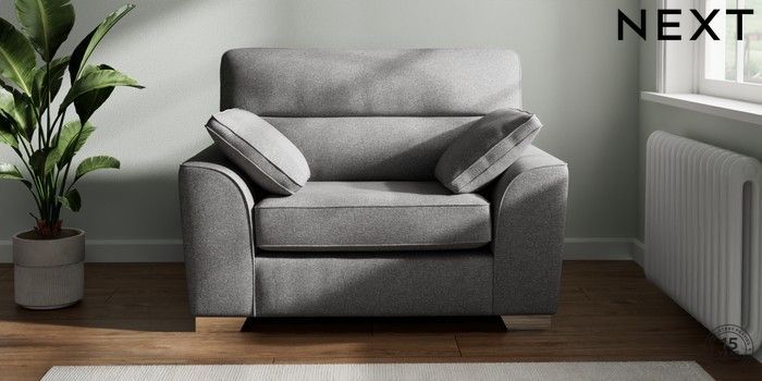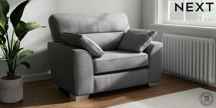 7.2.10 Buy Stamford Highback Snuggle Studio Chenille Mid Grey Large Square Angle - Chrome Metal from the Next UK online shop Click here to use our accessible website
