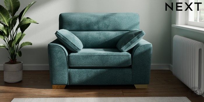 7.2.10 Buy Stamford Highback Snuggle Chunky Chenille Mid Teal Green Large Square Angle - Brushed Brass from the Next UK online shop Click here to use our accessible website