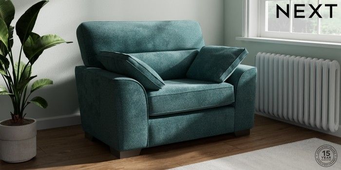 7.2.10 Buy Stamford Highback Snuggle Chunky Chenille Mid Teal Green Large Square Angle - Gunmetal from the Next UK online shop Click here to use our accessible website