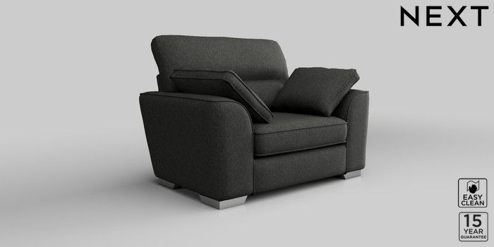 6.12.1 Buy Stamford Highback Snuggle Tweedy Blend Easy Clean Charcoal Grey Large Square Angle - Chrome Metal from the Next UK online shop Click here to use our accessible website