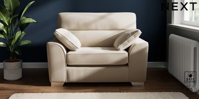 7.3.1 Buy Stamford Highback Snuggle Tweedy Blend Easy Clean Oyster Large Square Angle - Chrome Metal from the Next UK online shop Click here to use our accessible website