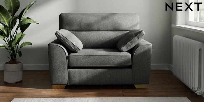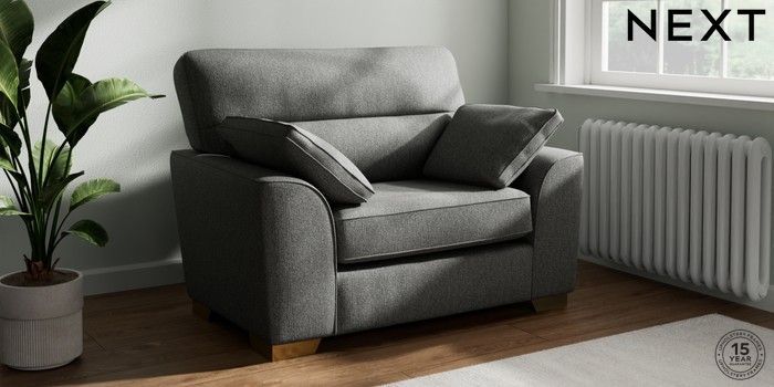 7.2.10 Buy Stamford Highback Snuggle Tweedy Chenille Dark Grey Large Square Angle - Brushed Brass from the Next UK online shop Click here to use our accessible website