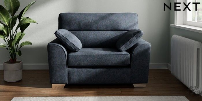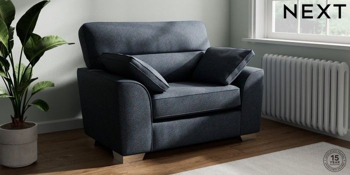 7.2.10 Buy Stamford Highback Snuggle Tweedy Chenille Navy Blue Large Square Angle - Chrome Metal from the Next UK online shop Click here to use our accessible website