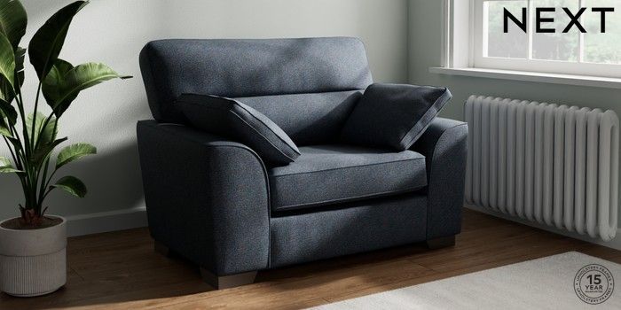 7.3.1 Buy Stamford Highback Snuggle Tweedy Chenille Navy Blue Large Square Angle - Gunmetal from the Next UK online shop Click here to use our accessible website