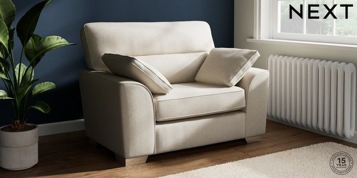 7.2.10 Buy Stamford Highback Snuggle Tweedy Chenille Oyster Large Square Angle - Chrome Metal from the Next UK online shop Click here to use our accessible website
