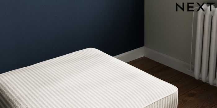 7.3.1 Buy Stamford Highback Storage Footstool Chenille Stripe Natural Square Angle - Brushed Brass from the Next UK online shop Click here to use our accessible website