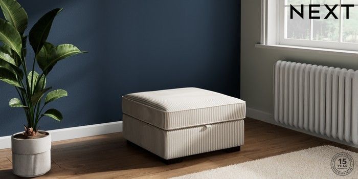 7.3.1 Buy Stamford Highback Storage Footstool Chenille Stripe Natural Square Angle - Dark from the Next UK online shop Click here to use our accessible website