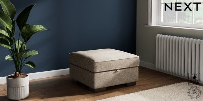 7.2.10 Buy Stamford Highback Storage Footstool Chunky Boucle Easy Clean Mid Natural Square Angle - Gunmetal from the Next UK online shop Click here to use our accessible website