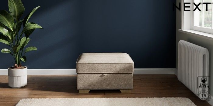 7.2.6 Buy Stamford Highback Storage Footstool Chunky Boucle Easy Clean Mid Natural Square Angle - Light from the Next UK online shop Click here to use our accessible website