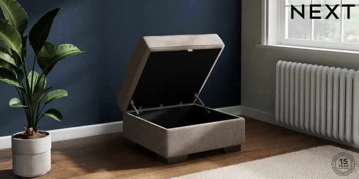 7.2.10 Buy Stamford Highback Storage Footstool Chunky Chenille Light Dove Square Angle - Gunmetal from the Next UK online shop Click here to use our accessible website