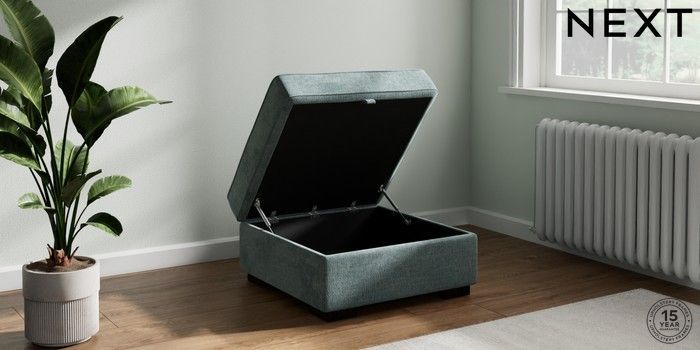 7.2.10 Buy Stamford Highback Storage Footstool Chunky Chenille Light Teal Green Square Angle - Dark from the Next UK online shop Click here to use our accessible website