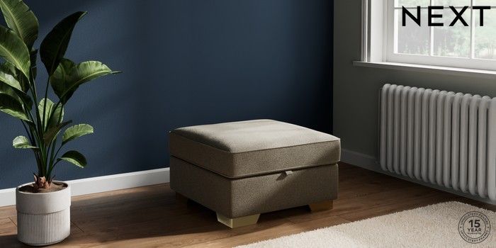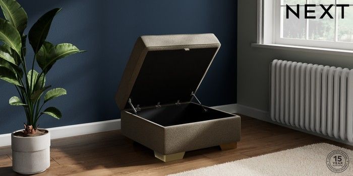 7.2.10 Buy Stamford Highback Storage Footstool Chunky Marl Light Olive Green Square Angle - Brushed Brass from the Next UK online shop Click here to use our accessible website