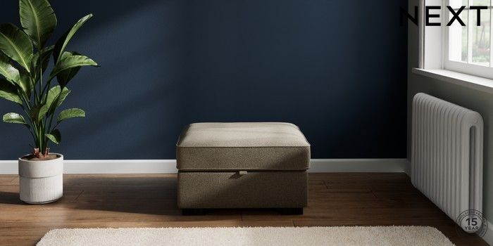 7.2.10 Buy Stamford Highback Storage Footstool Chunky Marl Light Olive Green Square Angle - Dark from the Next UK online shop Click here to use our accessible website