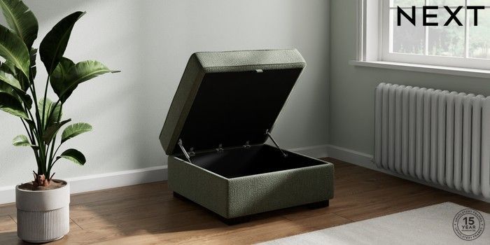 7.2.10 Buy Stamford Highback Storage Footstool Chunky Texture Mid Forest Green Square Angle - Dark from the Next UK online shop Click here to use our accessible website