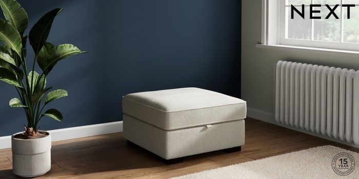 7.2.10 Buy Stamford Highback Storage Footstool Chunky Texture Oyster Square Angle - Dark from the Next UK online shop Click here to use our accessible website