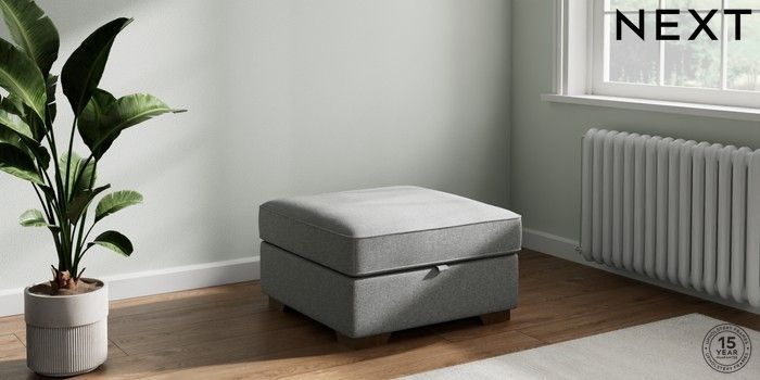7.2.10 Buy Stamford Highback Storage Footstool Chunky Weave Mid Grey Square Angle - Mid from the Next UK online shop Click here to use our accessible website
