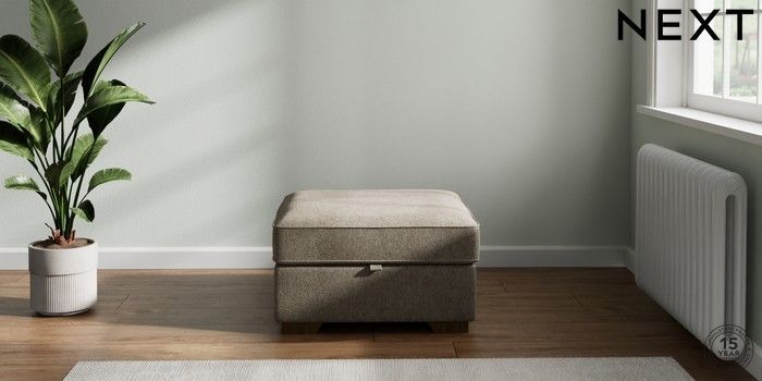 7.2.6 Buy Stamford Highback Storage Footstool Cotswold Chenille Mid Mink Brown Square Angle - Mid from the Next UK online shop Click here to use our accessible website