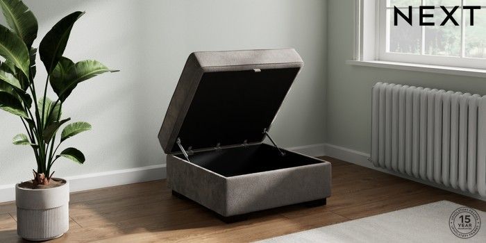 7.2.10 Buy Stamford Highback Storage Footstool Distressed Velour French Grey Square Angle - Dark from the Next UK online shop Click here to use our accessible website