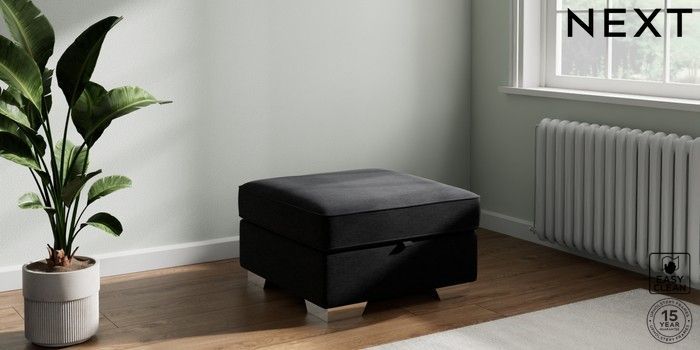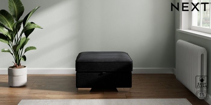 7.2.10 Buy Stamford Highback Storage Footstool Fine Chenille Easy Clean Black Square Angle - Chrome Metal from the Next UK online shop Click here to use our accessible website