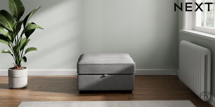 7.2.6 Buy Stamford Highback Storage Footstool Studio Chenille Mid Grey Square Angle - Dark from the Next UK online shop Click here to use our accessible website
