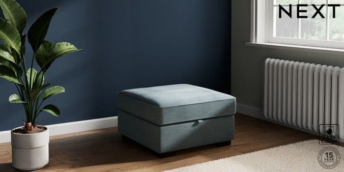 7.2.10 Buy Stamford Highback Storage Footstool Fine Chenille Easy Clean Mid Blue Square Angle - Dark from the Next UK online shop Click here to use our accessible website