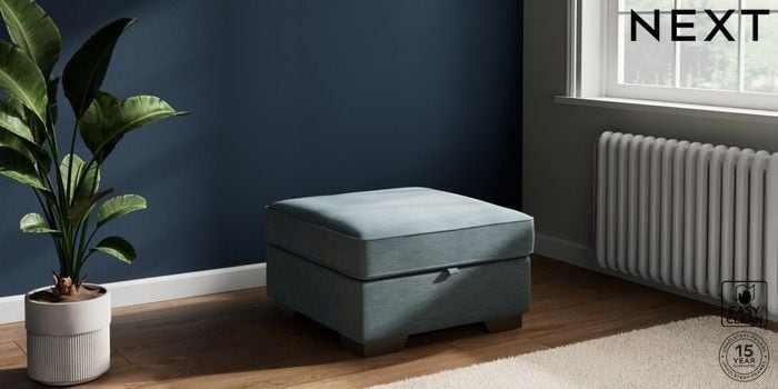7.2.10 Buy Stamford Highback Storage Footstool Fine Chenille Easy Clean Mid Blue Square Angle - Gunmetal from the Next UK online shop Click here to use our accessible website