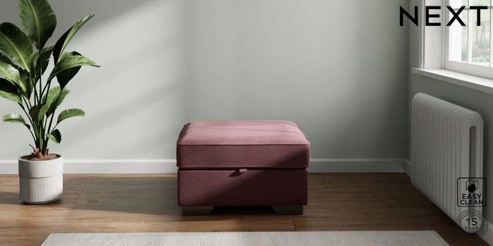 7.2.6 Buy Stamford Highback Storage Footstool Fine Chenille Easy Clean Mid Mulberry Purple Square Angle - Gunmetal from the Next UK online shop Click here to use our accessible website