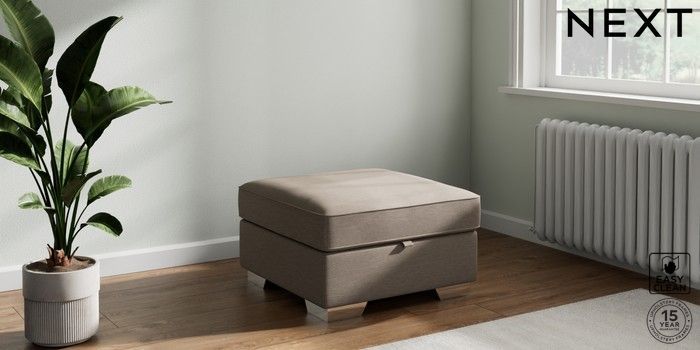 7.3.1 Buy Stamford Highback Storage Footstool Fine Chenille Easy Clean Mid Taupe Brown Square Angle - Chrome Metal from the Next UK online shop Click here to use our accessible website
