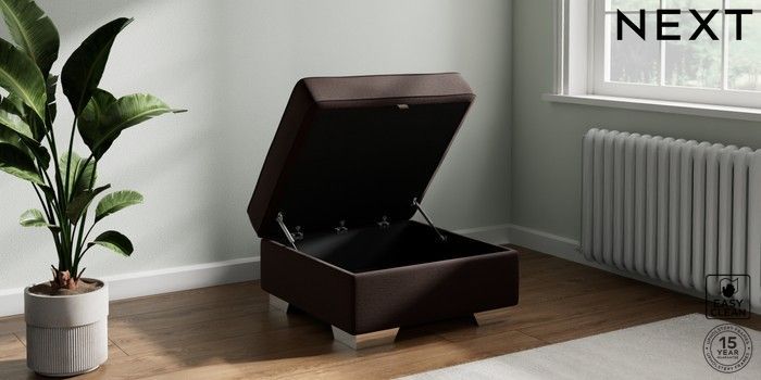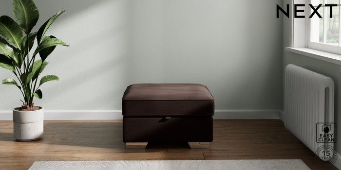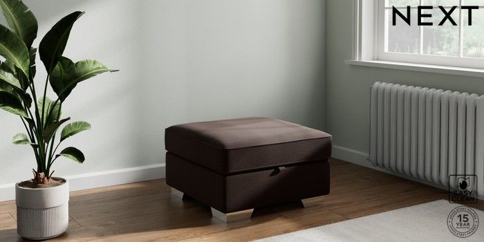 7.2.10 Buy Stamford Highback Storage Footstool Fine Chenille Easy Clean Chocolate Brown Square Angle - Chrome Metal from the Next UK online shop Click here to use our accessible website