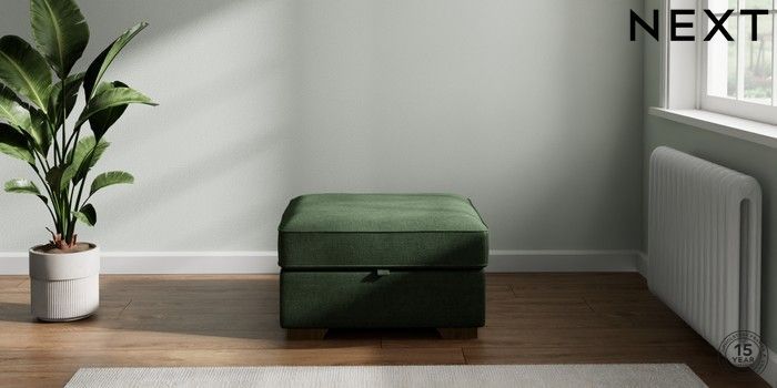 7.2.6 Buy Stamford Highback Storage Footstool Luxe Chenille Dark Green Square Angle - Mid from the Next UK online shop Click here to use our accessible website