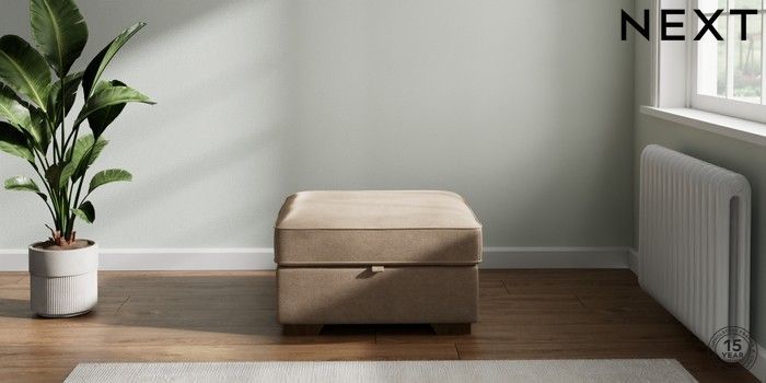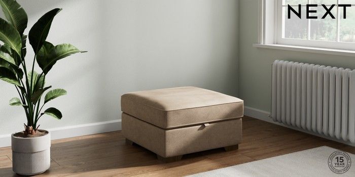 7.2.10 Buy Stamford Highback Storage Footstool Luxe Chenille Mid Camel Beige Square Angle - Mid from the Next UK online shop Click here to use our accessible website