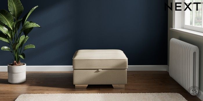 7.2.10 Buy Stamford Highback Storage Footstool Natural Mix Light Natural Square Angle - Chrome Metal from the Next UK online shop Click here to use our accessible website