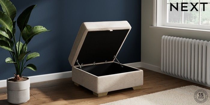 7.2.6 Buy Stamford Highback Storage Footstool Boucle Chenille Oyster Square Angle - Light from the Next UK online shop Click here to use our accessible website