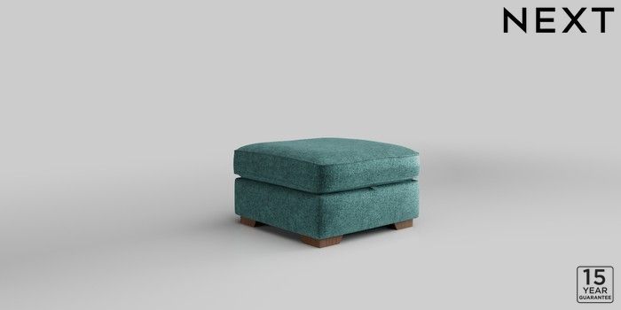 6.12.1 Buy Stamford Highback Storage Footstool Plush Chenille Dark Teal Green Square Angle - Mid from the Next UK online shop Click here to use our accessible website