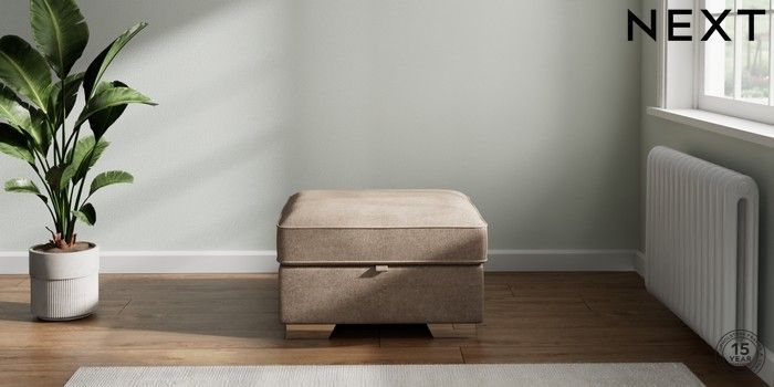 6.12.1 Buy Stamford Highback Storage Footstool Plush Chenille Mid Natural Square Angle - Chrome Metal from the Next UK online shop Click here to use our accessible website