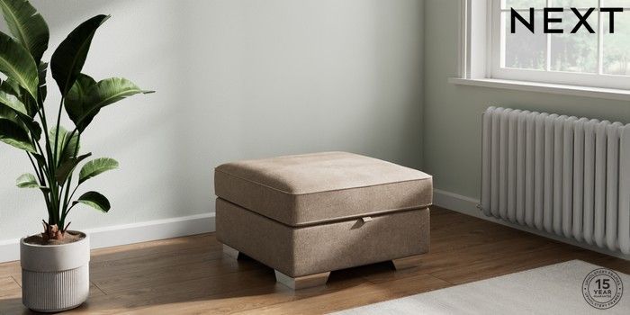 7.2.10 Buy Stamford Highback Storage Footstool Plush Chenille Mid Natural Square Angle - Chrome Metal from the Next UK online shop Click here to use our accessible website