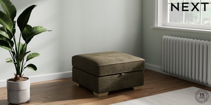 7.2.10 Buy Stamford Highback Storage Footstool Plush Chenille Moss Green Square Angle - Light from the Next UK online shop Click here to use our accessible website