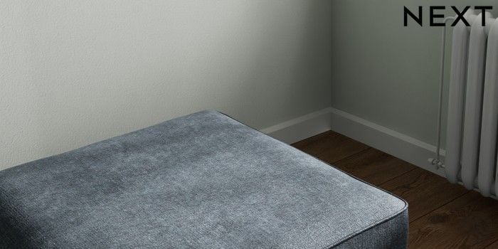 7.2.10 Buy Stamford Highback Storage Footstool Plush Chenille Slate Blue Square Angle - Chrome Metal from the Next UK online shop Click here to use our accessible website