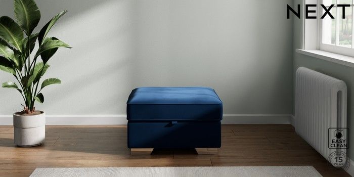 7.3.1 Buy Stamford Highback Storage Footstool Plush Velvet Easy Clean Navy Blue Square Angle - Chrome Metal from the Next UK online shop Click here to use our accessible website