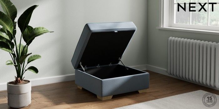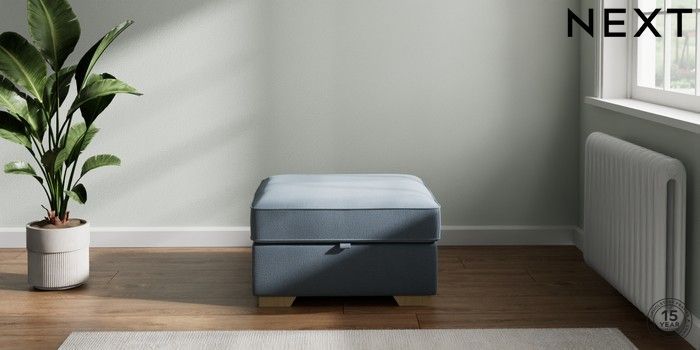 7.2.10 Buy Stamford Highback Storage Footstool Relaxed Linen Look Mid Blue Square Angle - Light from the Next UK online shop Click here to use our accessible website